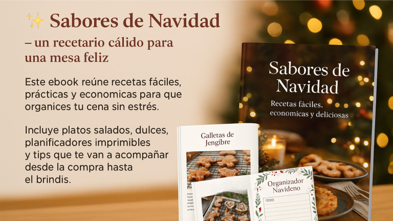 Tu tiempo vale oro, y más en Navidad. Por eso este recetario no solo te da recetas: te devuelve calma, orden y la sensación de “ya tengo todo bajo control”.